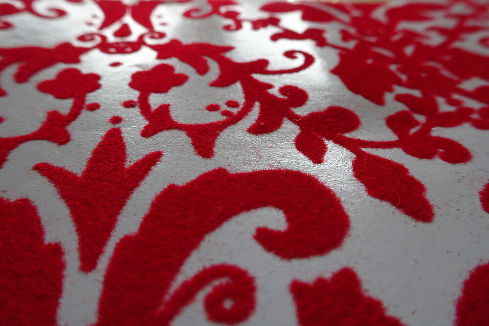 Beflockung verleiht Materialien eine textile Oberfläche mit warmer, samtartiger Anmutung. Es entstehen ausgefallene Gestaltungseffekte, die in erster Linie fühlbar, bei partieller Beflockung aufgrund entstehender Dreidimensionalität auch deutlich sichtbar sind.