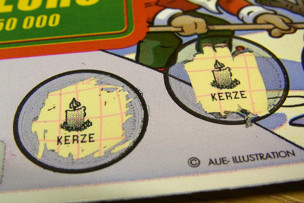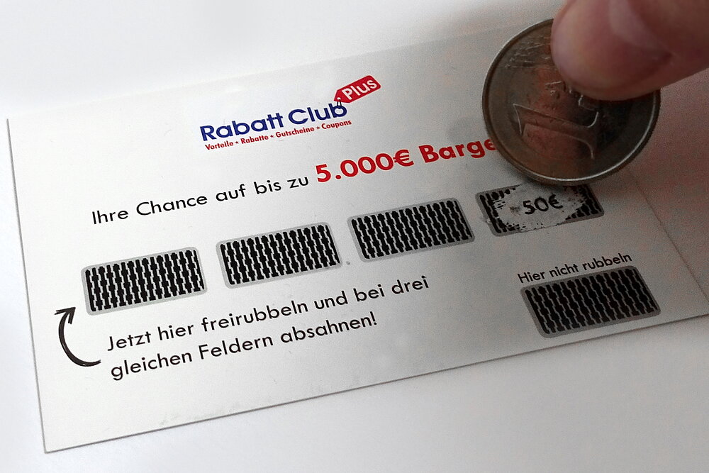 Auch der Rubbellack selbst beeinflusst das Ablöseverhalten. UV-Rubbellack ist hart und spröde und lässt sich eher schwer und unvollständig abrubbeln. Rubbellack auf Lösemittelbasis hingegen ist weich und somit leicht und vollständig ablösbar. Der Härtegrad lässt sich ebenfalls individuell auf das Produkt abstimmen.