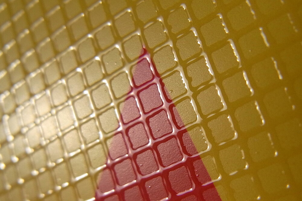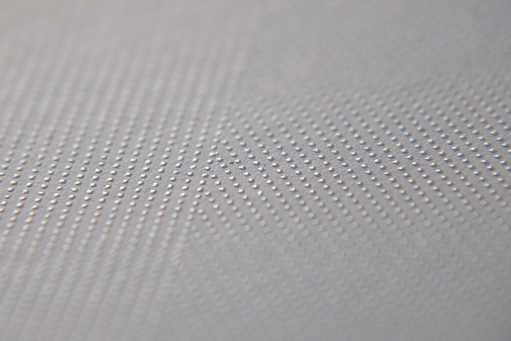 Die deutlich fühlbaren Lackpunkte können auch geprägte Blindenschrift ersetzen.