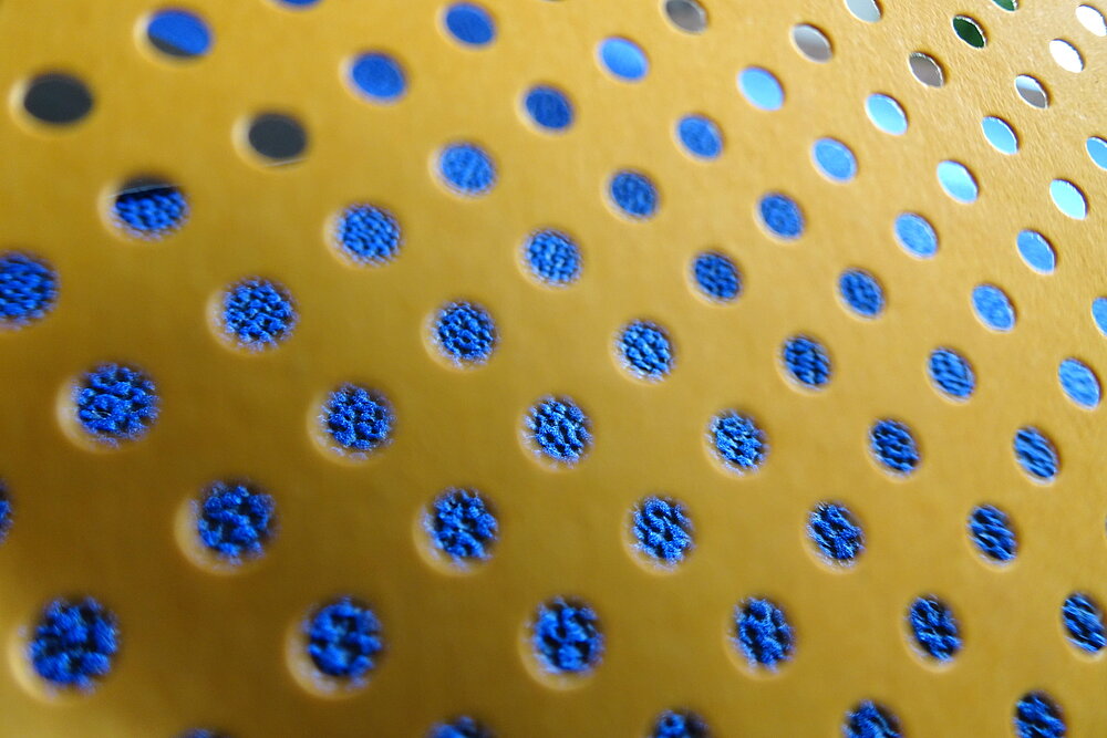 Außerdem verändert die Lochung der Oberfläche die Haptik der Materialien verblüffend.