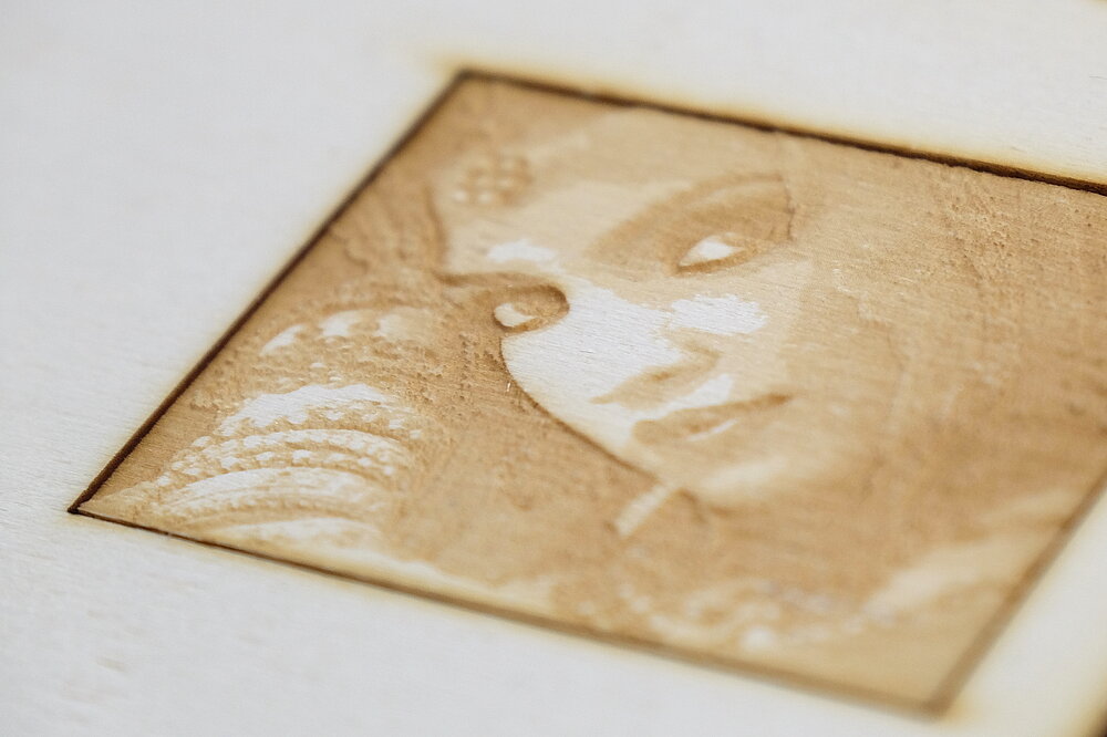 Lasergravieren ist ein partielles Abtragen der Materialoberfläche mittels Laserstrahl, was visuelle als auch haptische Effekte erzeugt.